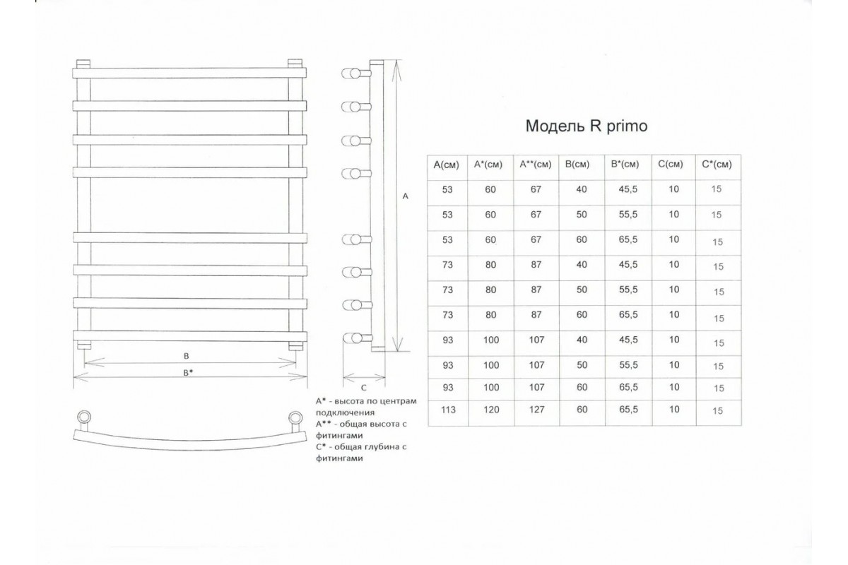 ДВИН полотенцесушитель водяной R Primo 60/50 хром