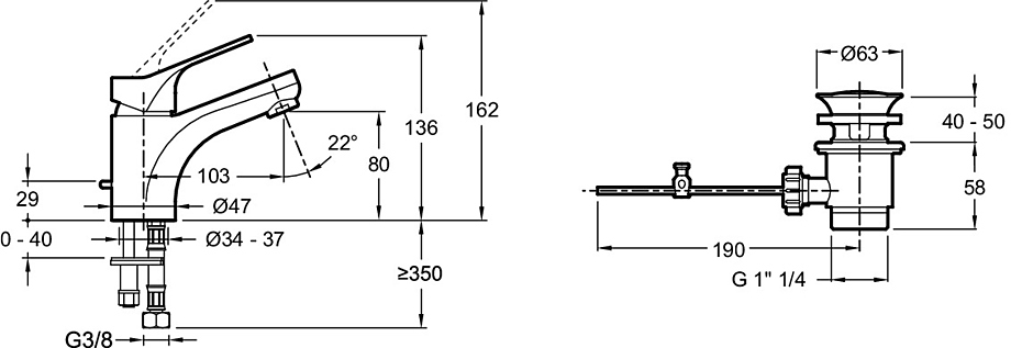 - Он оснащен донным клапаном, управляемым рычагом, который расположен сбоку. Это обеспечивает удобство использования и легкий доступ к функции переключения потока воды.
