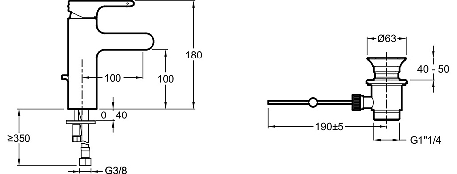 - Высота смесителя (см)