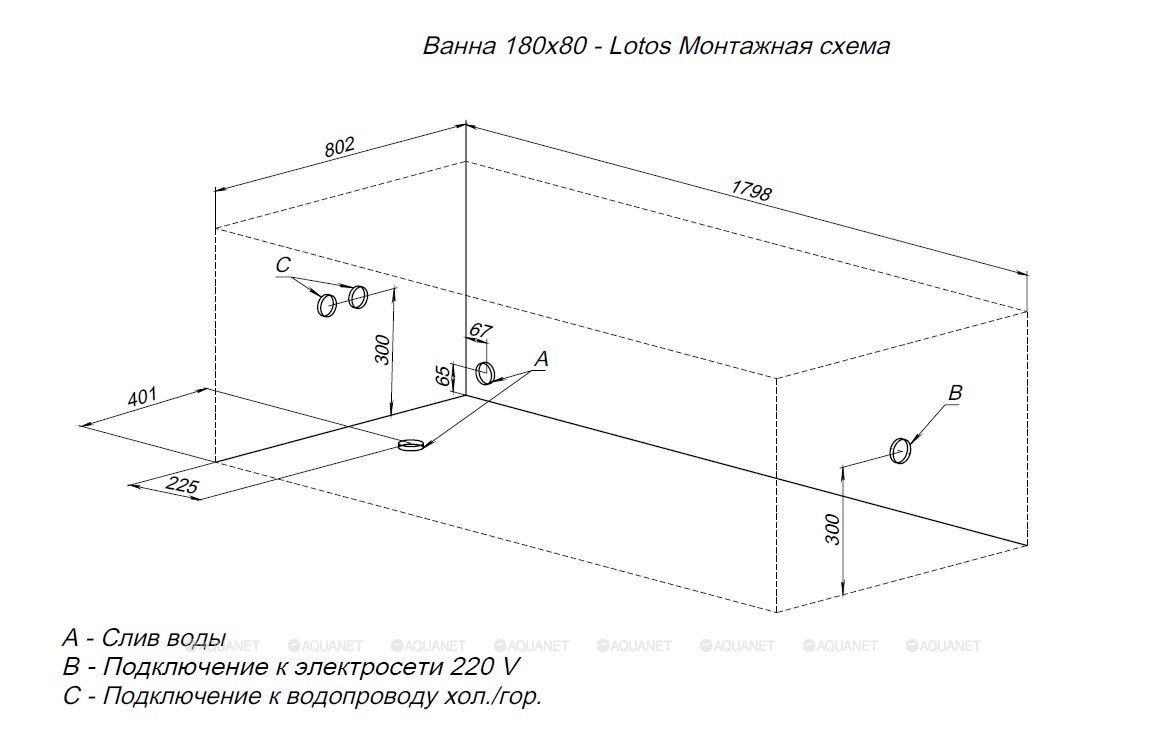 AQUANET Ванна LOTOS 180х80