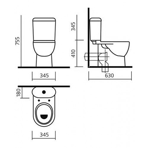 Комплектация: унитаз, бачок, сиденье, арматура, крепления Способ монтажа: напольный Крепление к полу: скрытое Направление выпуска: универсальный Скрытый выпуск: да Ободковая чаша: да Система Антивсплеск: даОбъем бачка: 6.5 л Тип смыва: каскадный Материал: фарфор Арматура: Однорежимная эконом Сиденье: полипропилен Система Clip UP: нет Система Soft close: нет
